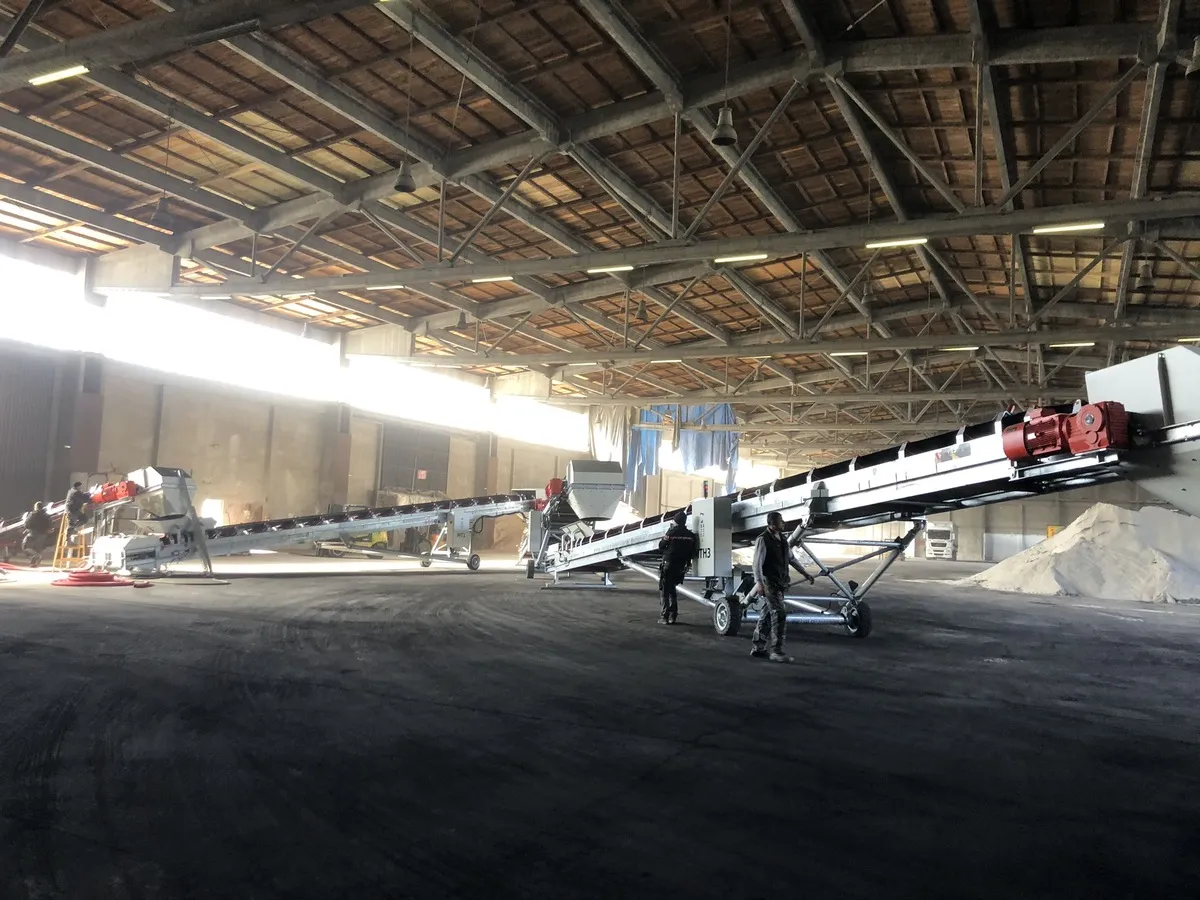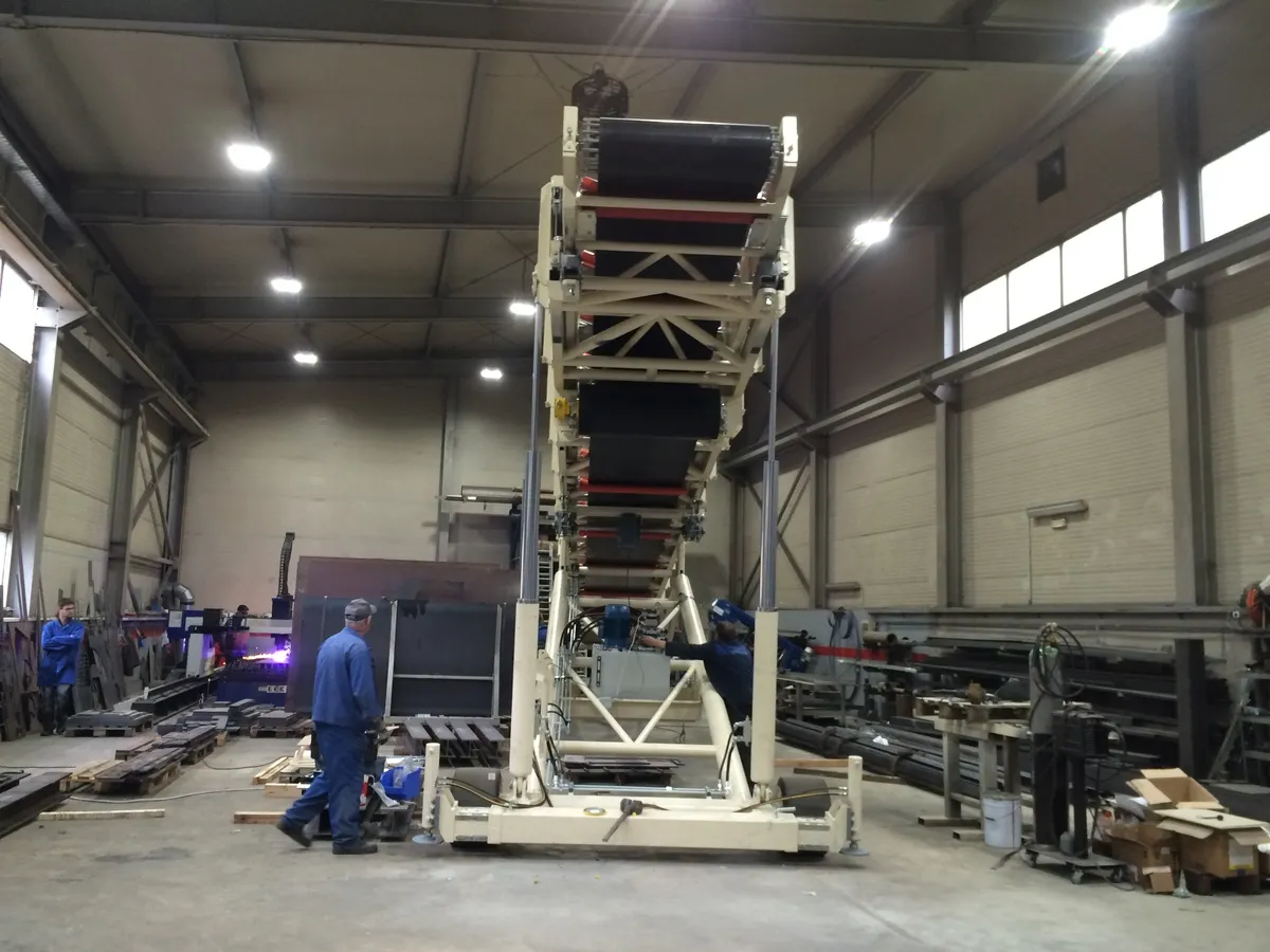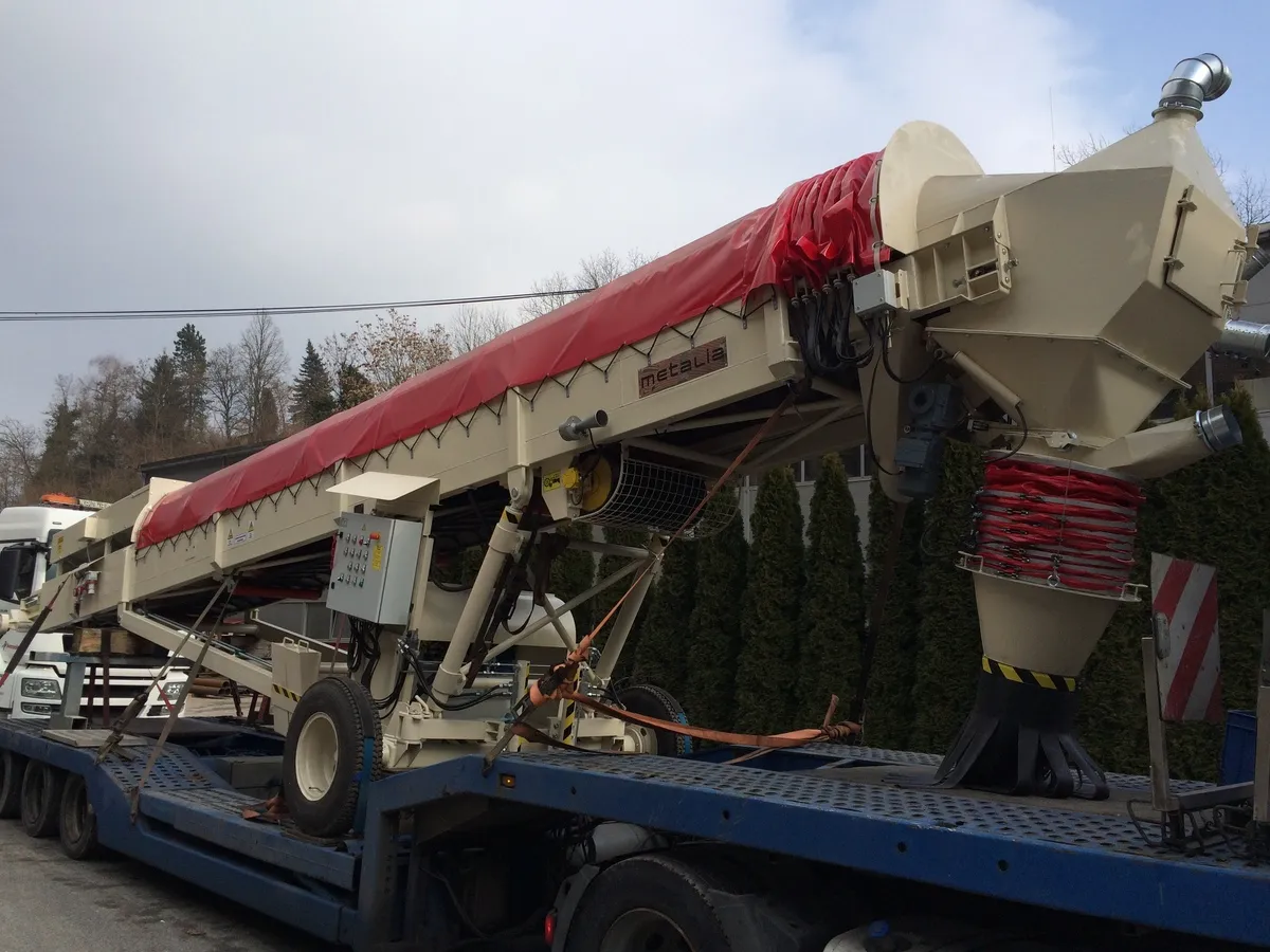 Ta namenski transporter z gumi trakom je zasnovan za polnjenje 40-ft ladijskih kontejnerjev z teleskopskim podaljšanjem roke, kar omogoča enostavno in hitro nalaganje materialov v ladijske zabojnike. Ena ključnih prednosti tega sistema je, da omogoča polnjenje običajnih ladijskih zabojnikov brez potrebe po dodatni manipulaciji zabojnika, kar poenostavi celoten proces in zmanjša potrebo po dodatnem transportu ali premikanju zabojnikov. S tem postanejo ladijski zabojniki primerna rešitev za tudi razsute tovore, ne le kosovne.