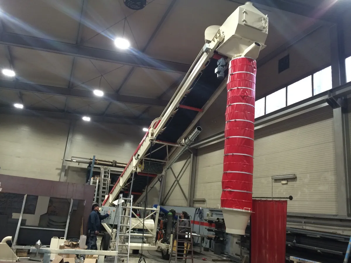 Mobilni teleskopski transporter je zasnovan za fleksibilno in učinkovito premikanje materialov v različnih industrijskih okoljih. Ima nastavljiv nagib in teleskopsko dolžino, kar omogoča prilagoditev potrebam na terenu ter omogoča različne načine uporabe. Zaradi kolesne izvedbe je transporter enostaven za premikanje in ga je možno poljubno prestavljati po različnih delovnih površinah.